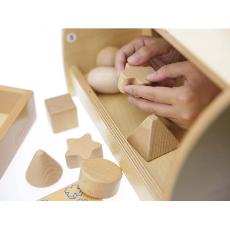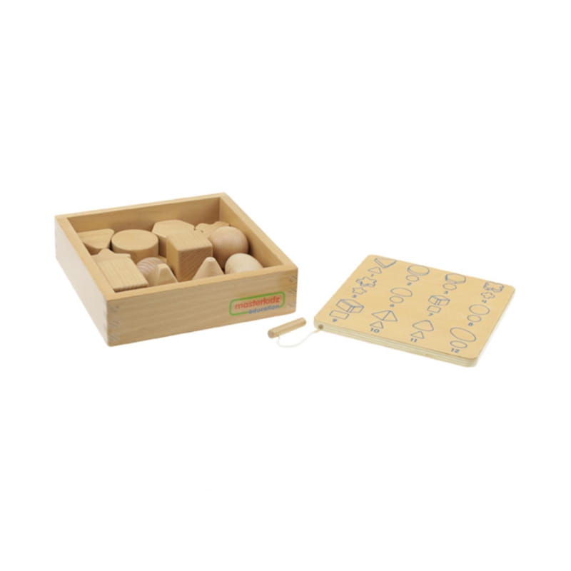 Komplet 12 drewnianych elementów do gry w Zgaduj Dotykiem zawiera bloczki o różnych kształtach. Odgadywanie ich może na początku sprawiać dziecku problem, ale z każdą próbą dziecko będzie się rozwijać, oraz ćwiczyć.