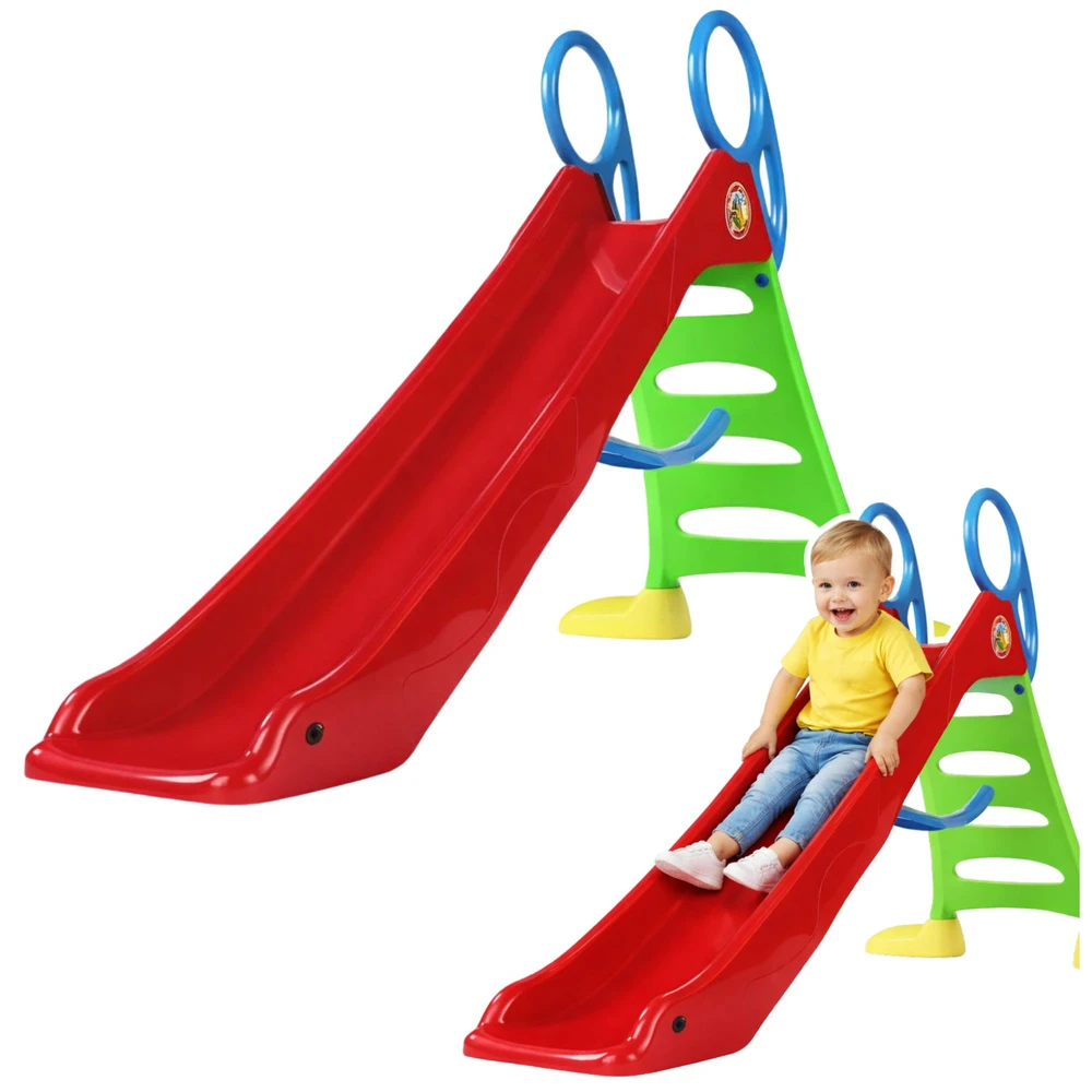Dziecięca zjeżdżalnia ogrodowa to świetny sposób na spędzanie czasu na zewnątrz. Zjeżdżalnia posiada antypoślizgowe schodki zwiększające bezpieczeństwo małego użytkownika. Dzięki jaskrawej kolorystyce zdecydowanie stanie się charakterystycznym punktem każdego przydomowego placu zabaw. Maksymalne obciążenie zjeżdżalni wynosi 50 kg, dzięki czemu mogą korzystać z niej nawet kilkuletnie dzieci.