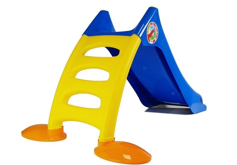 Na zjeżdżalnie można wejść po trzystopniowej drabince w kolorze żółtym, a sam ślizg występuje w kolorze niebieskim. Wysokość całej zjeżdżalni od podłoża to 75 cm! Zjeżdżalnia nie posiada żadnych ostrych krawędzi, jest wykonana z wysokiej jakości materiałów i tworzyw sztucznych. Przy drabince znajdują się nóżki w kolorze pomarańczowym.