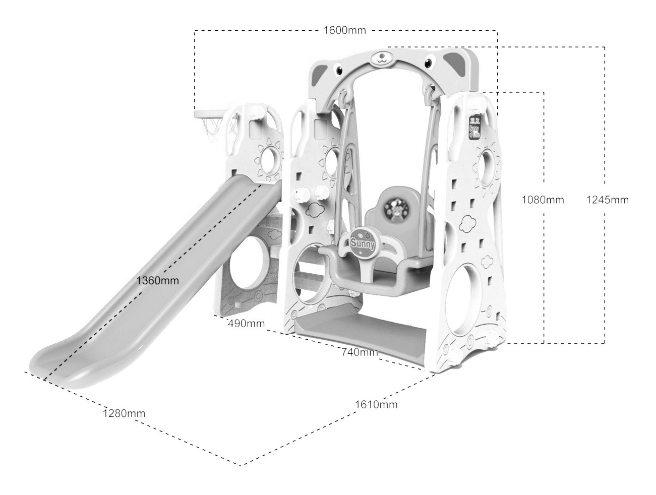 Zestaw to nie tylko ślizganie i bujanie! Zjeżdżalnia ogrodowa z huśtawką i koszykówką ZOG.CHD-101W jest wyposażona w obręcz do koszykówki z siatką oraz piłkę do gry. Dzięki temu Twoje dziecko ćwiczy celność i koordynację, rozwijając sportową pasję od najmłodszych lat pod okiem promieni słońca.