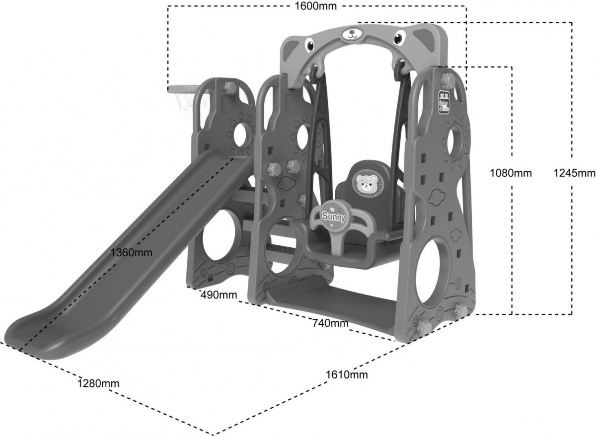 Dane techniczne produktu Zjeżdżalnia ogrodowa z huśtawką i koszykówką ZOG.CHD-101