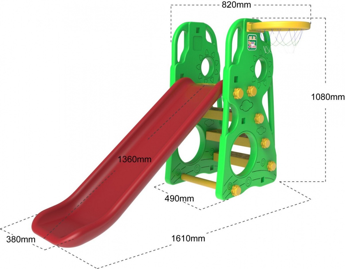Główną atrakcją zestawu jest długi, 136-centymetrowy ślizg wykonany z podwójnej warstwy plastiku. Szerokie i bezpieczne stopnie sprawiają, że wspinaczka na górę jest łatwa nawet dla małych stóp. Wybierając Zjeżdżalnię ogrodową z huśtawką i koszykówką ZOG.CHD-101, stawiasz na ergonomię dopasowaną do potrzeb dziecka.