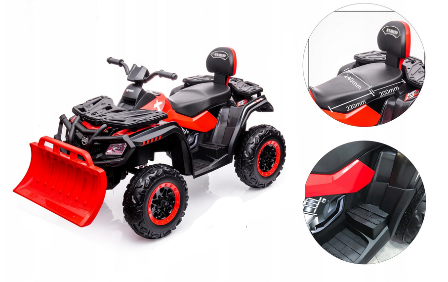 To, co wyróżnia ten model na tle konkurencji, to zamontowana z przodu szufla. Choć pojazd nie służy do profesjonalnego odśnieżania, szufla w Quadzie na akumulator S615 stanowi genialny element zabawy – pozwala dziecku na zgarnianie liści, przewożenie lekkich zabawek czy imitowanie pracy na placu budowy. To funkcja, która pobudza kreatywność i sprawia, że zabawa nigdy się nie nudzi.